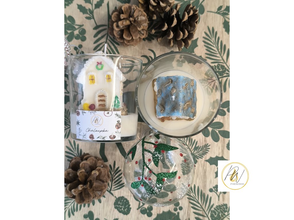 Je večer. V ulicích jemně svítí pouliční lampy pokryté vrstvičkou čerstvě napadaného sněhu. Pod nohama vrzá sněhová pokrývka a od pusy stoupá ledový kouř. A v tom! Tam nahoře! Krásná chaloupka, vypadá jako perníková. V oknech je vidět světlo, na střeše se lesknou vánoční ozdoby a v domě je slyšet smích. Teplé kakao, oheň v krbu a rodinná pohoda u stědrovečeního stolu. To vše a mnohem víc symbolizuje naše ručně malovaná chaloupová svíčka.